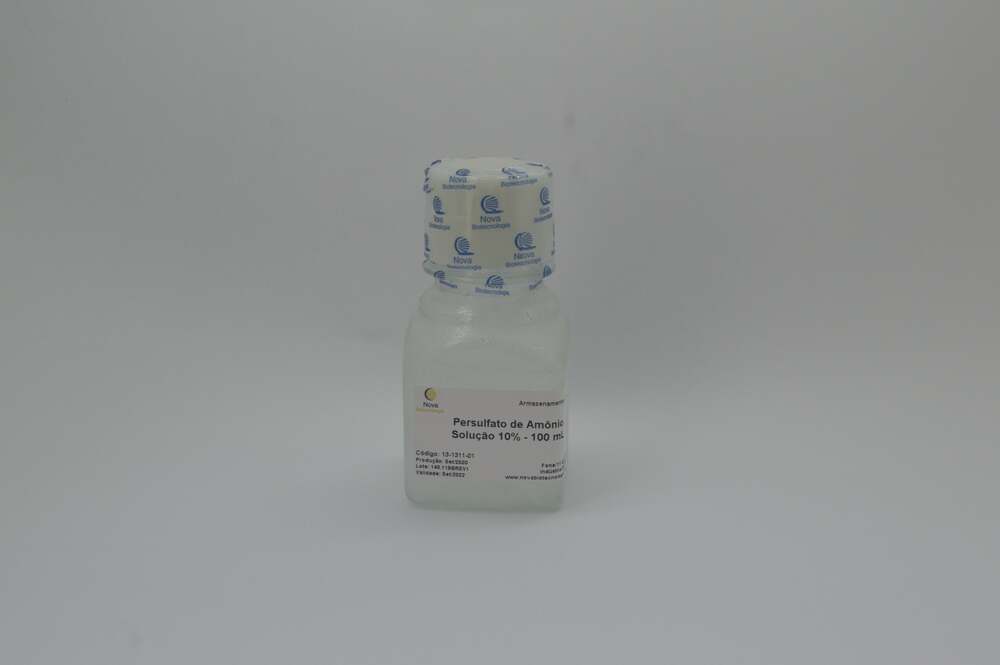 O Persulfato de Amônio a 10% é uma solução preparada nesta concentração, para ser utilizada na concentração desejada.
