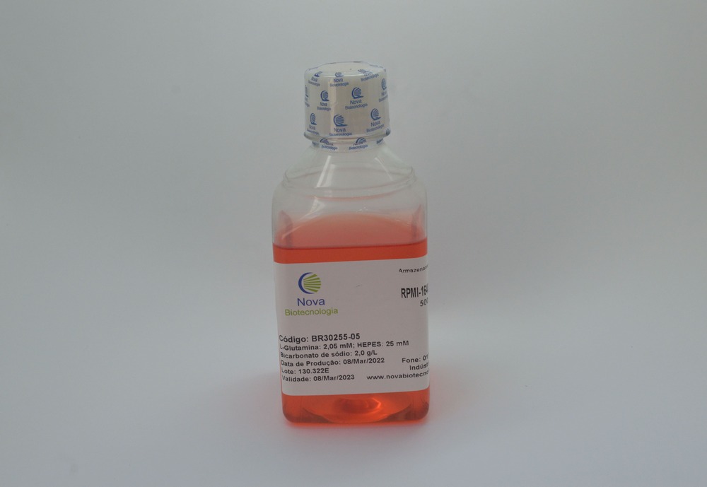 RRPMI-1640 com bicarbonato de sódio [2,0 g/L], L-Glutamina [2,05 mM] e com HEPES [25 mM] – 500mL