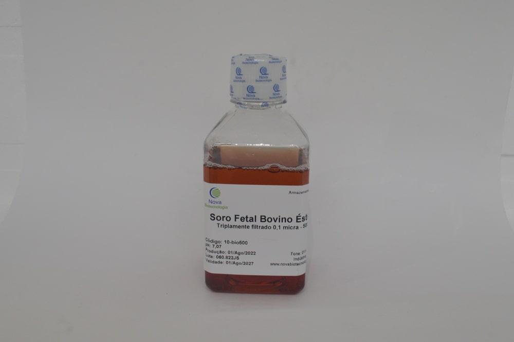 Principais características: ✔ Filtrado triplamente em membranas de acetato de celulose (<0,1μm) ✔ Livre de contaminação microbiológica (testado para Mycoplasma e outros agentes) ✔ Baixa hemoglobina (<15mg/dL, abaixo do padrão de 25mg/dL) ✔ Indicado para culturas de células eucariontes ✔ Ideal para pesquisa, manufatura de vacinas e fármacos ✔ Processamento padronizado e certificado ✔ Armazenamento seguro em -20°C Composição Química: 🔬 Rico em fatores de crescimento, proteínas e nutrientes essenciais. Especificações: Origem: Frigoríficos inspecionados pelo SIF (Ministério da Agricultura) Método de coleta: Punção asséptica (cardíaca ou venosa) Filtração: Tripla filtragem a 0,1μm Inativação térmica: 56°C por 30 minutos (versões inativadas) Validade: Conforme lote e armazenamento adequado (-20°C) Disponibilidade e Entrega: Nosso estoque é dinâmico, garantindo a melhor logística para sua necessidade! 🚚 Entregamos para todo o Brasil com rastreamento completo. Códigos e Identificação: SKU: 10-BIO100/10-BIO500 NCM: 29420000 Opções de Volume: 100mL (10-BIO100) e 500mL (10-BIO500)